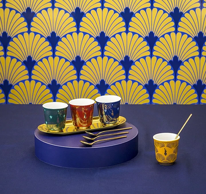Offez-vous un voyage au rythme des fêtes enchanteresses et jazzies des années folles ! Bialetti plonge dans l’Histoire avec des motifs géomértiques et des couleurs pétillantes en proposant une collection de 4 tasses originales avec cette collection Déco Glamour.