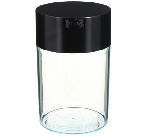 Une boîte conservatrice noir et transparent Coffeevac (500gr/1,85L) de la marque Tightvac. La boîte conservatrice d’aliments la plus reconnue dans le monde, avec une simple pression, l’air est évacué de la boîte pour vous permettre de conserver bien plus longtemps vos aliments.