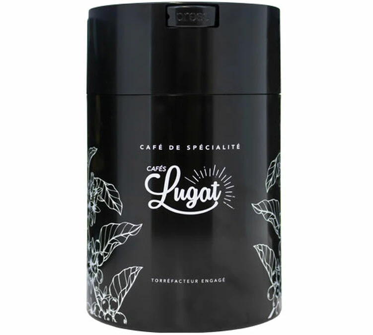 La boîte conservatrice Cafés Lugat est un récipient scellé sous vide , une boîte de stockage pour votre café qui maintient le café au frais jusqu’à 3 fois plus longtemps que les conteneurs classiques. La couleur noire de la boîte permet de conserver bien plus longtemps votre café car il sera à l’abris de la lumière.
