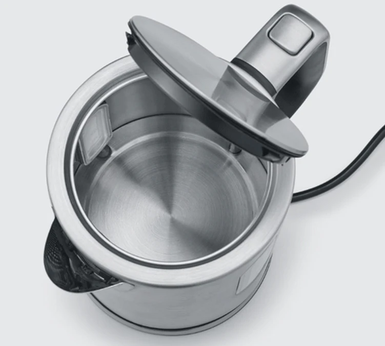 La poignée thermique protège de la chaleur. Sur le dessus de la poignée se trouve un bouton-pression qui permet d’ouvrir le couvercle en toute sécurité. Sur les côtés de la verseuse, vous trouverez des fenêtres indicatrices du niveau d’eau et rétro-éclairé. La bouilloire s’éteint automatiquement une fois la température atteinte. Pour des raisons de sécurité, la bouilloire s’éteint si la verseuse est vide. Retrouvez un large choix de bouilloires de différents formats sur MaxiCoffee.com.