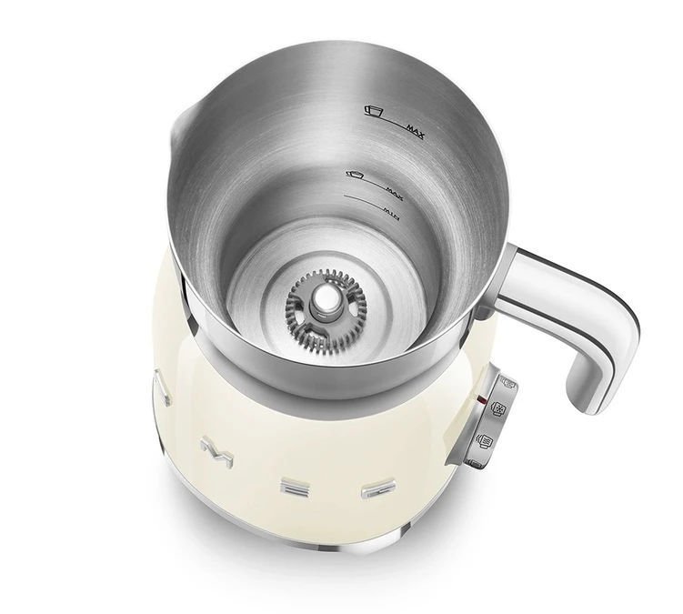 Dernier de la gamme de petits électroménagers, la MFF11CREU est une chocolatière et émulsionneur de lait au design inspiré des années passées. En équipant votre cuisine de cette Chocolatière SMEG, vous donnerez alors, une touche rétro-chic à celle-ci. Vous allez sans aucun doute apprecier son corps en Inox ainsi que sa structure crème qui la rend très élégante.