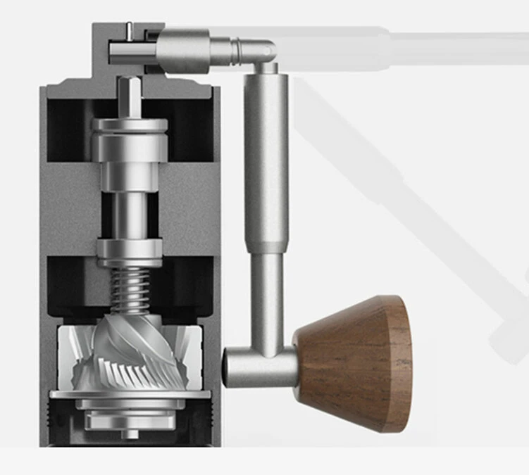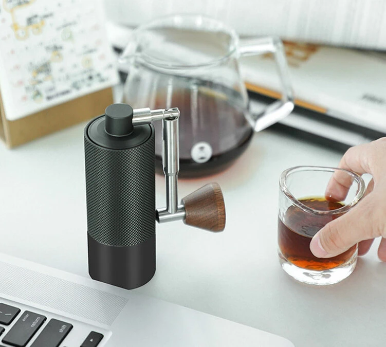 Avec sa taille compacte (126 mm de haut et 45 mm de diamètre), le moulin à café manuel Timemore Chestnut Nano 3 est plus petit que la plupart des smartphones. Une fois dépliée, la poignée rétractable de 152 mm assure une bonne prise en main avec son embout en bois de noyer.