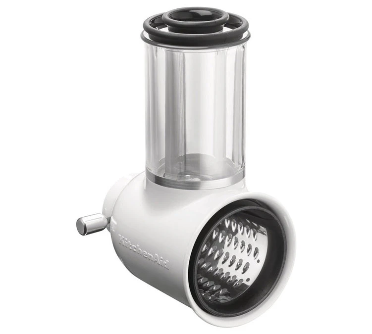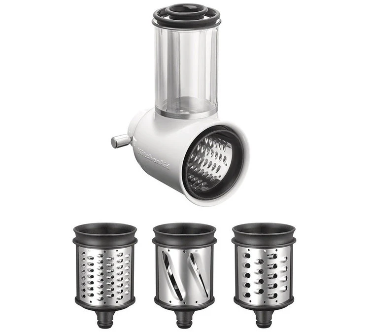 Facilitez votre quotidien en utilisant ce tranchoir/râpe compatible avec le robot pâtissier Artisan de KitchenAid. Ils se fixent sur le moyeu de fixation polyvalent du robot KitchenAid.
